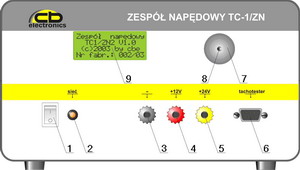 Zespół napędowy TC-1/ZN2 jest umieszczony w metalowej obudowie i wyposażony w stabilizowany mikroprocesorowo silnik elektryczny, wyświetlacz LCD, wielofunkcyjne pokrętło z przyciskiem, gniazdo sygnałowe służące do współpracy z Tachotesterem TC-1 i zasilacz stabilizowany +12/+24V z ogranicznikiem prądu do zasilania tachografów. Przyrząd jest zasilany z sieci prądu przemiennego 220-240V/50-60Hz. Wyprowadzenie wałka napędowego wykonane jest w postaci znormalizowanej (wg. PN) płetwy z gwintem M22x1,5.